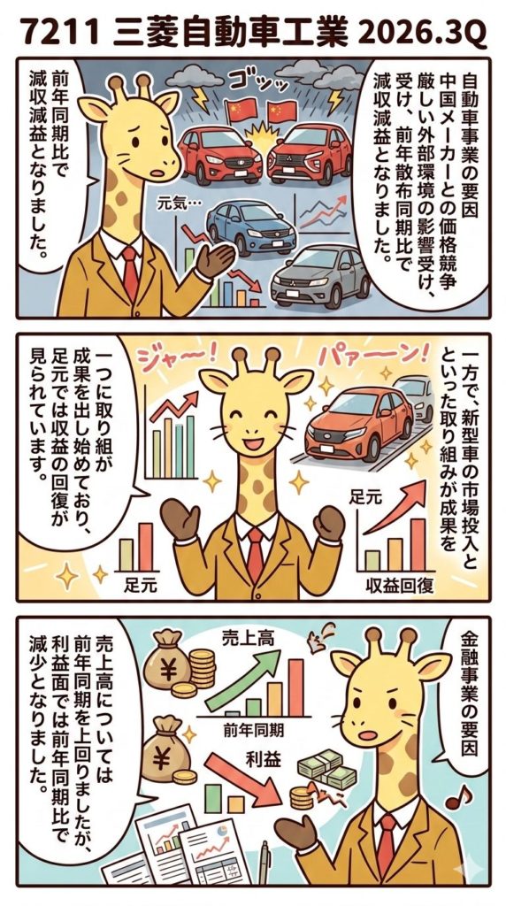 三菱自動車工業(7211)2026.3Q 決算解説漫画