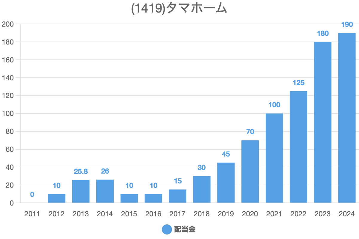 タマホーム(1419)の過去の配当履歴です。