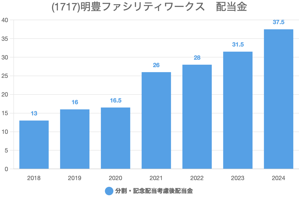 明豊ファシリティワークス(1717)の過去の配当履歴です。