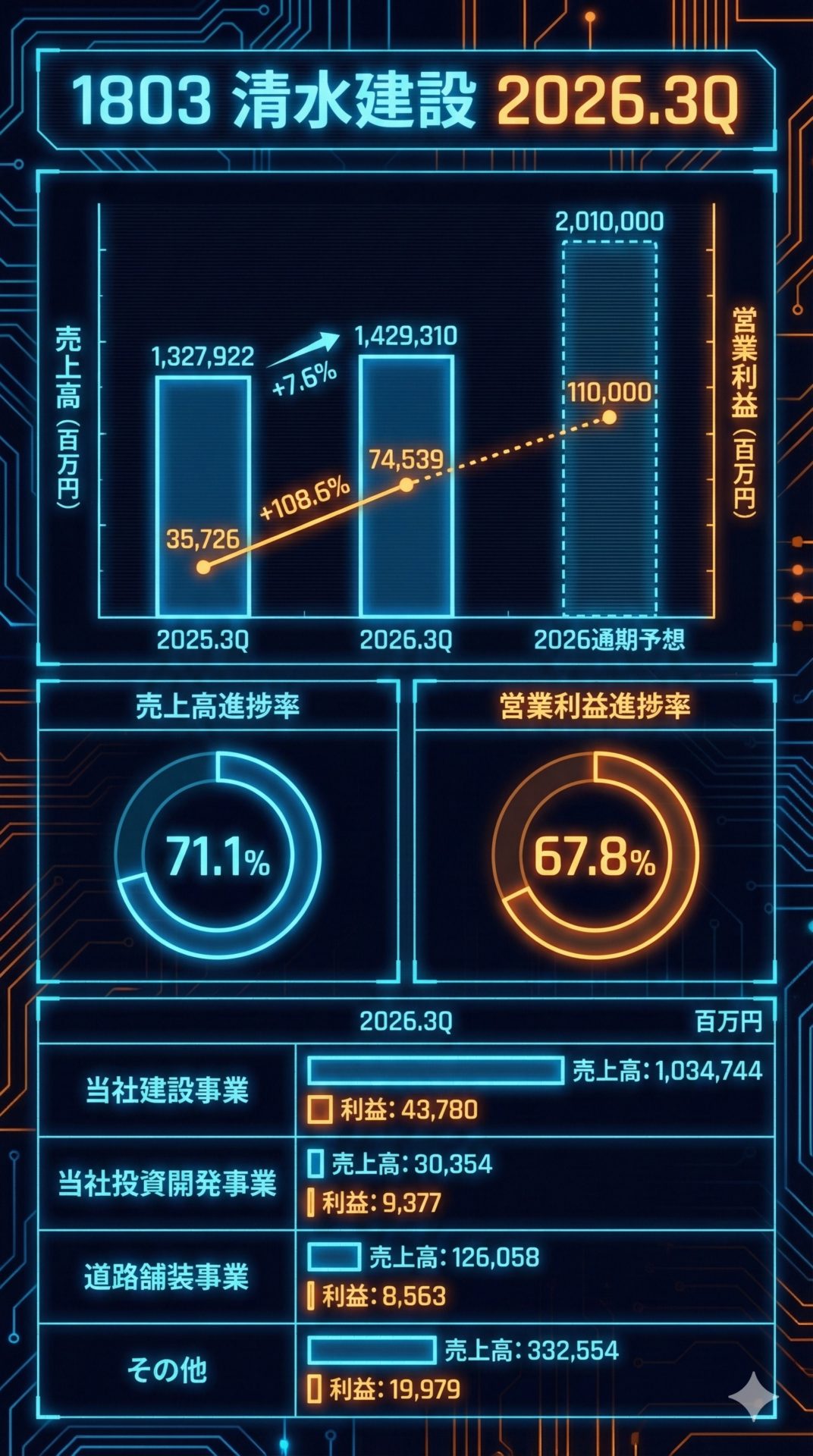 手持ちの大型工事が順調に進捗したことで完成工事高が増加し、