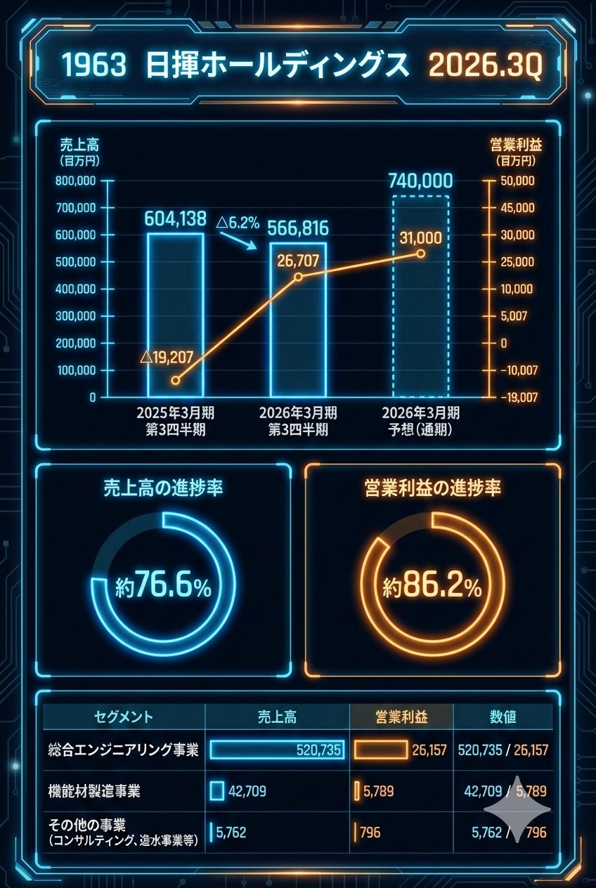 営業利益の進捗率:約86.2%(26,707百万円 ÷ 31,000百万円)