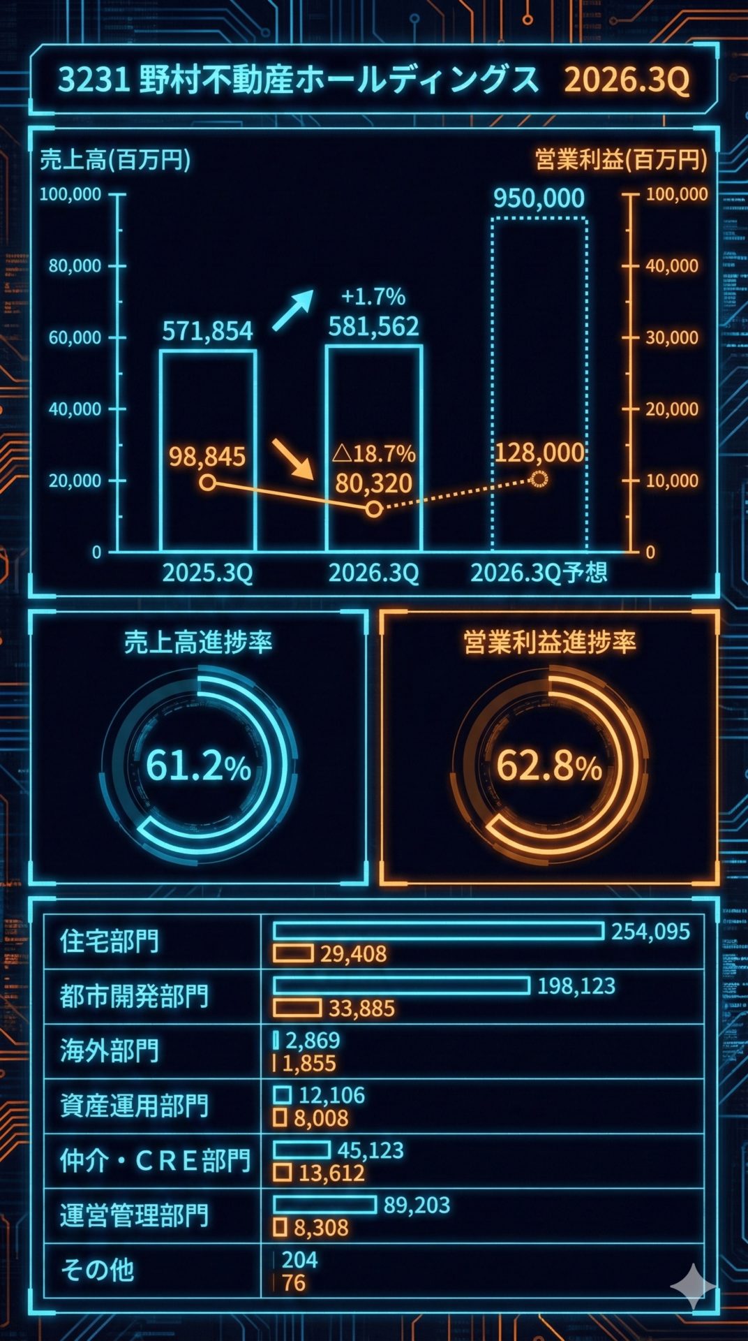 売上高進捗率: 61.2% (581,562百万円 / 950,000百万円)
