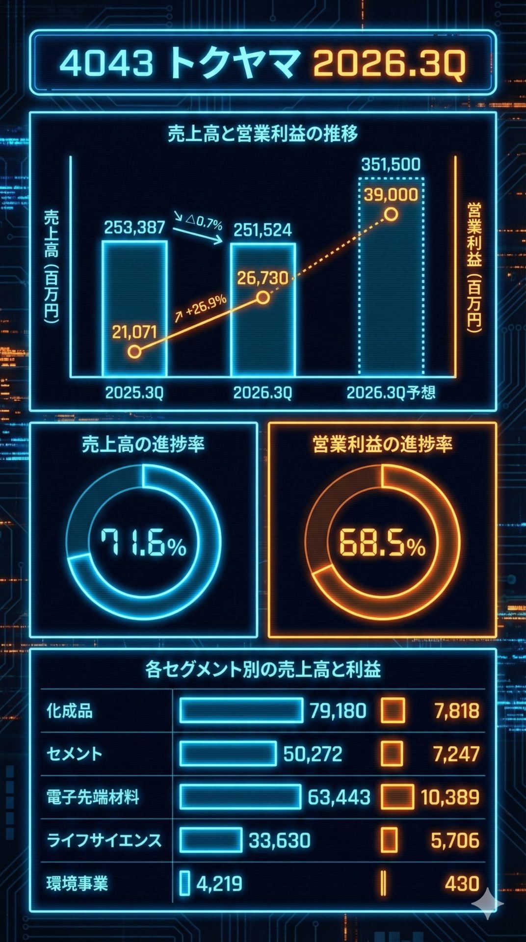 環境事業: イオン交換膜の出荷増加や、廃石膏ボードリサイクルの堅調な推移により、増収を達成し、前年同期の営業損失から黒字に転換しました。