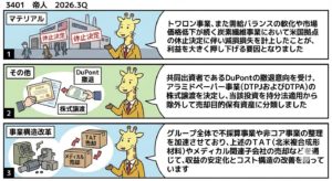 高機能ウレタン: 新たな事業取得により大幅な増収となりましたが、既存のコーティング事業の不振に加え、事業統合(PMI)費用の発生により営業損失を計上しました
