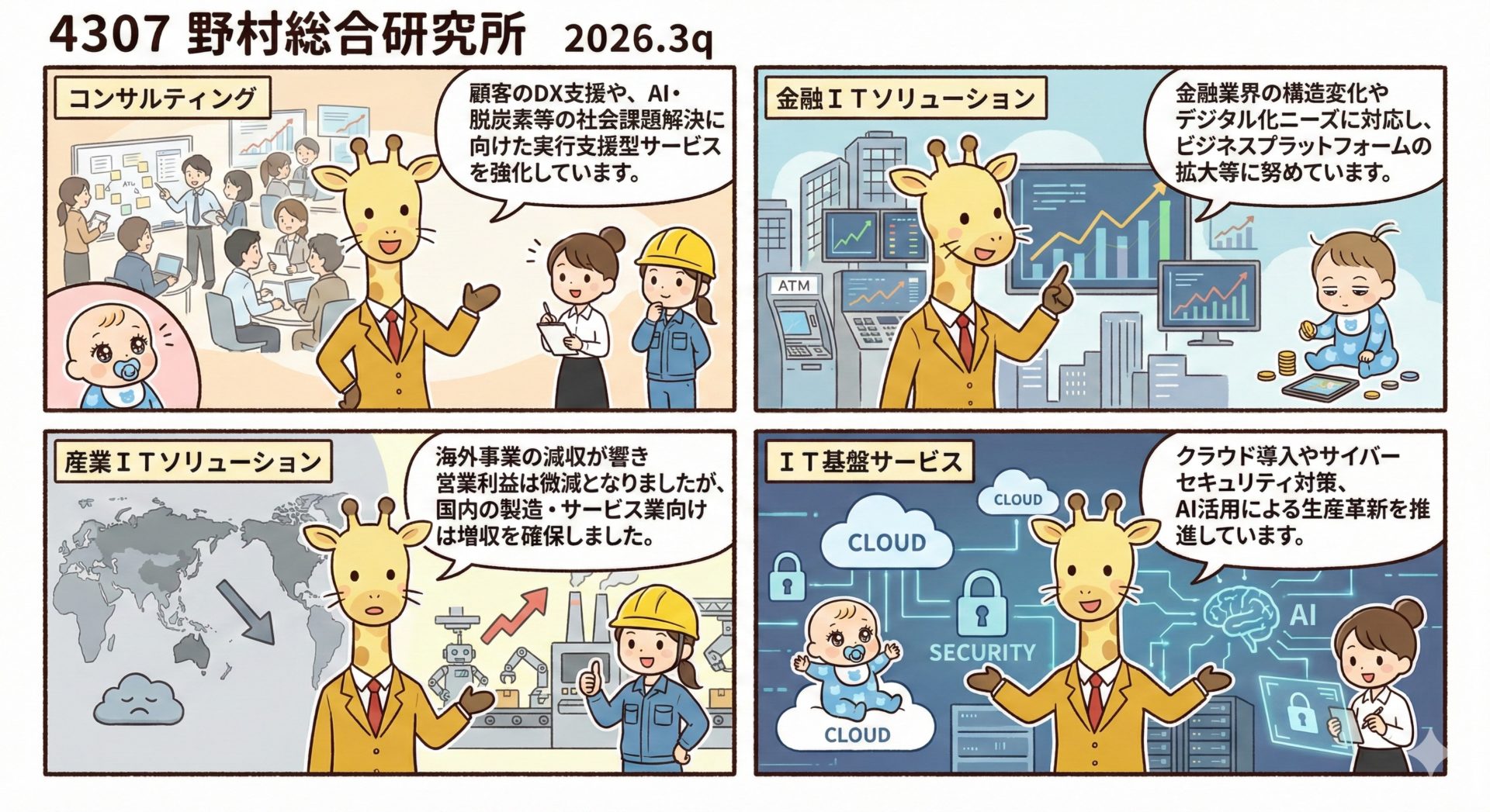 海外事業の減収が響き営業利益は微減となりましたが、国内の製造・サービス業向けは増収を確保しました。