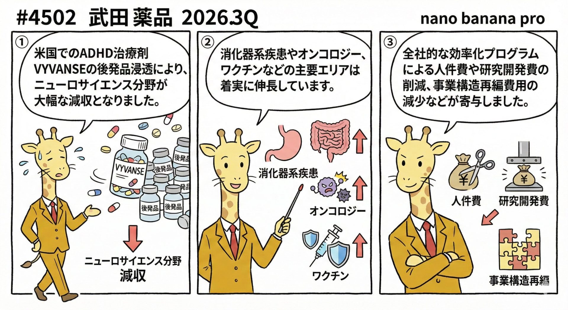 米国でのADHD治療剤VYVANSEの後発品浸透により、ニューロサイエンス分野が大幅な減収となりました 。