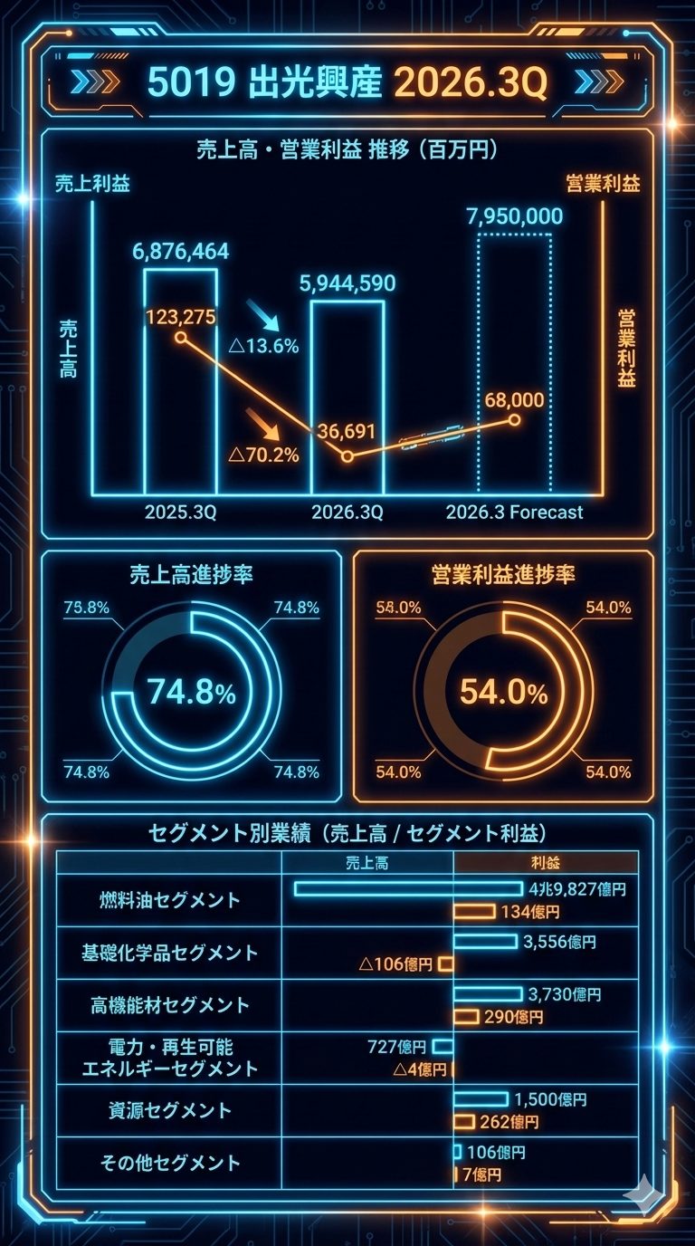 燃料油セグメント: 売上高 4兆9,827億円、セグメント利益 134億円