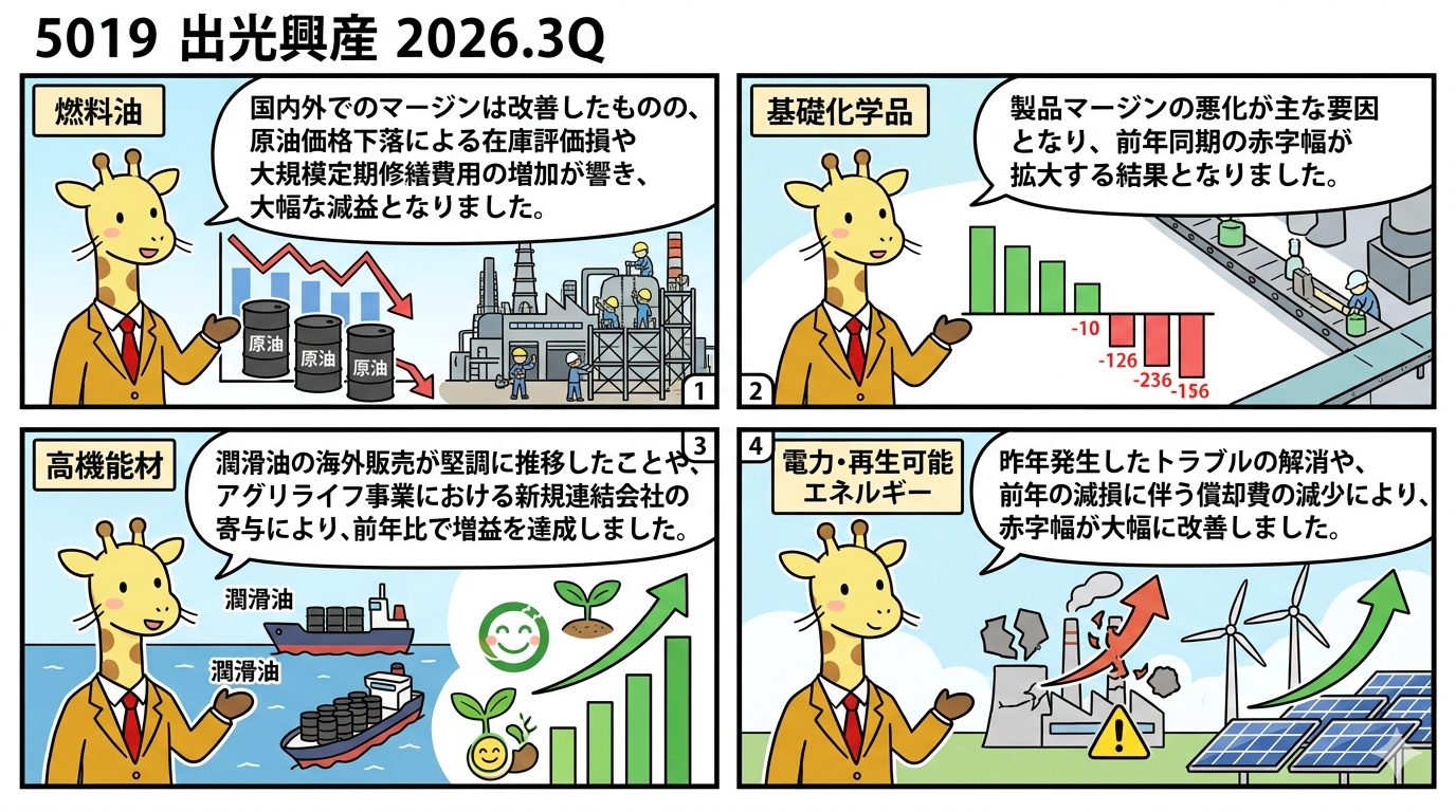 電力・再生可能エネルギー: 昨年発生したトラブルの解消や、前年の減損に伴う償却費の減少により、赤字幅が大幅に改善しました。