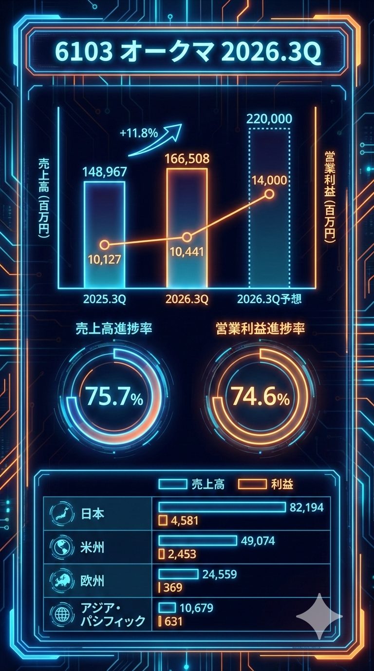 営業利益進捗率:約74.6% (10,441百万円 ÷ 14,000百万円)