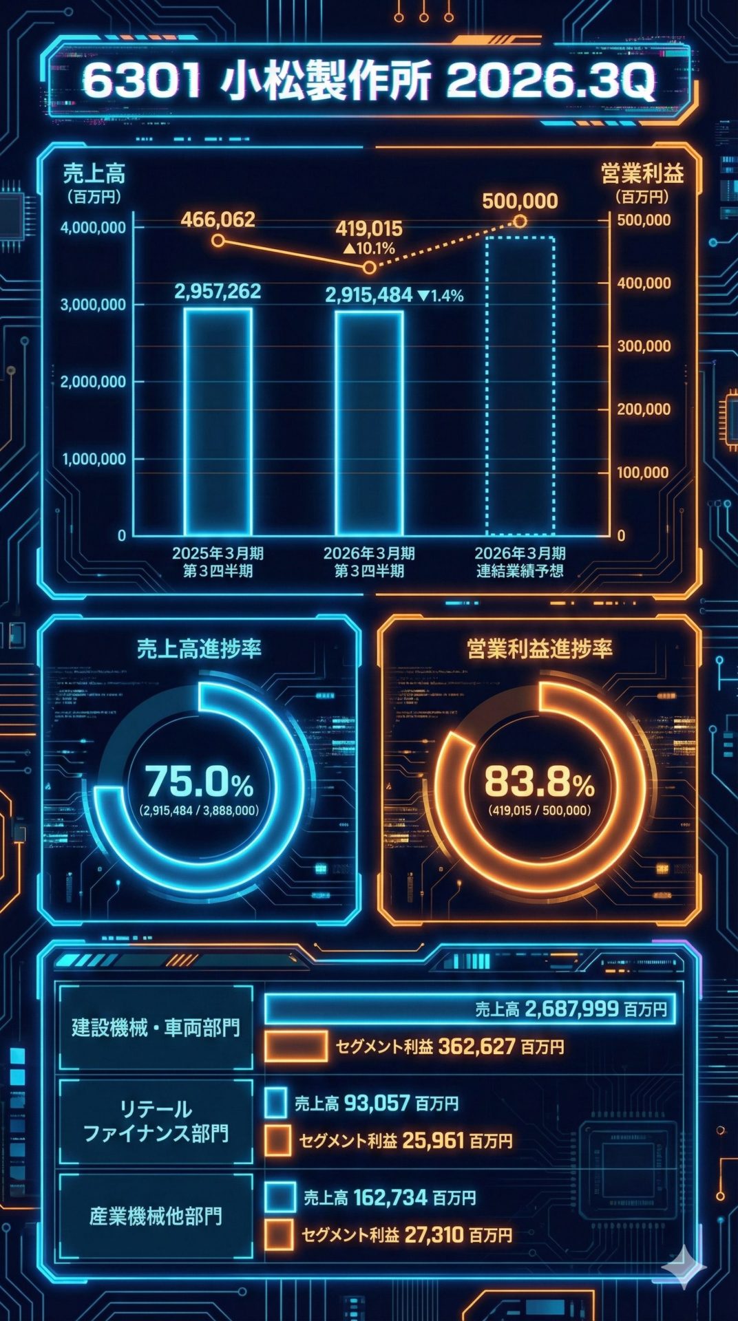 建設機械・車両部門:売上高 2,687,999 百万円、セグメント利益 362,627 百万円 [5]