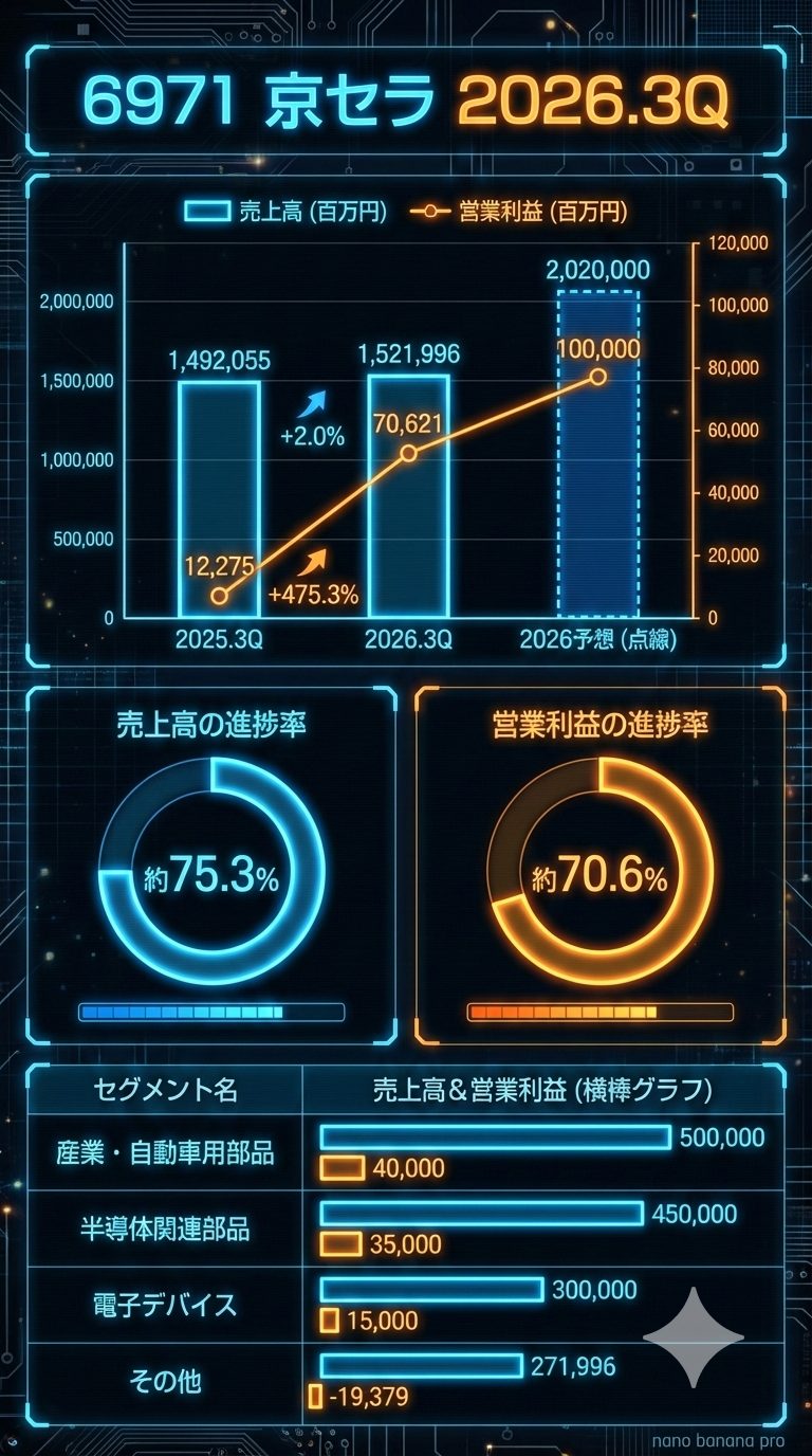 コアコンポーネント: AIやデータセンター向けの半導体関連部品(セラミック・有機パッケージ)の販売が伸び、増収となりました。