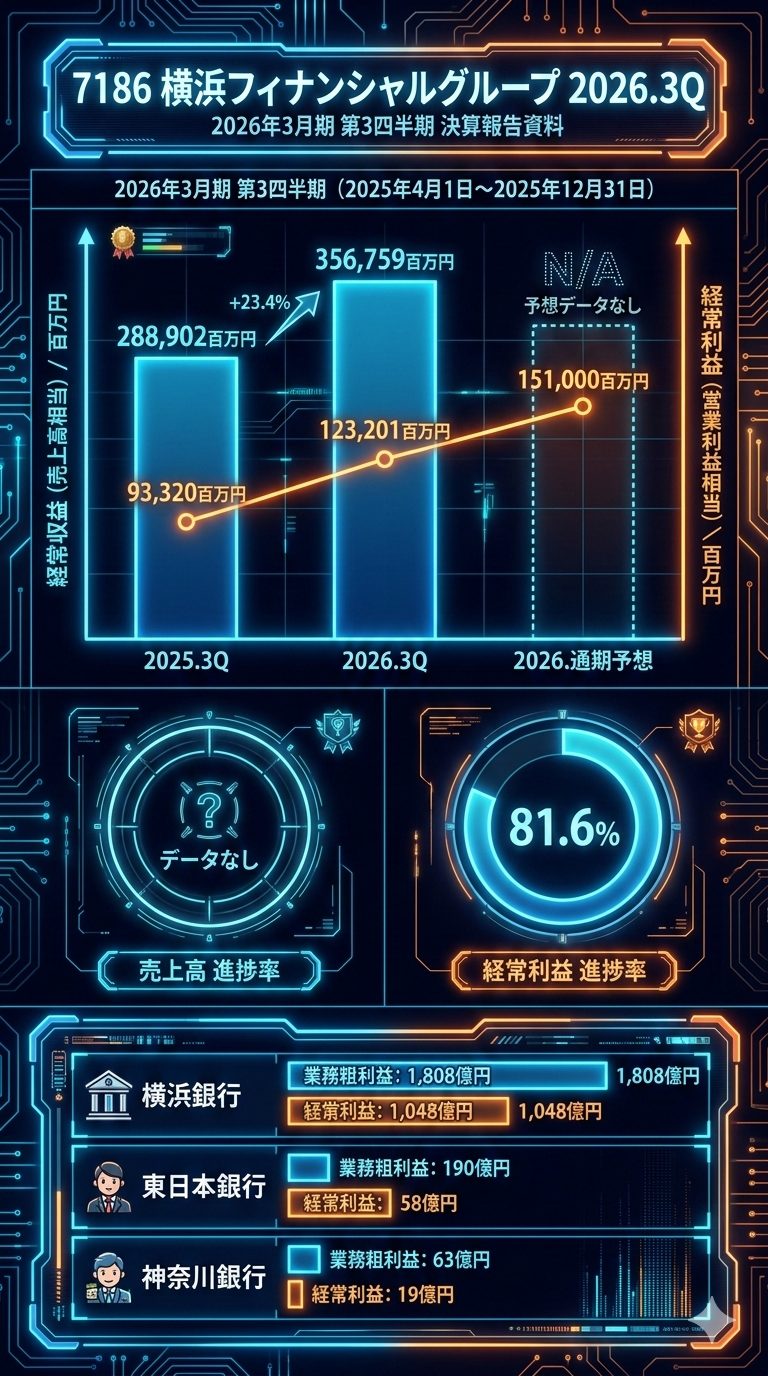東日本銀行・神奈川銀行: 横浜銀行ほどの大幅な増益ではないものの、預貸金利息や役務取引利益の改善が見られます。