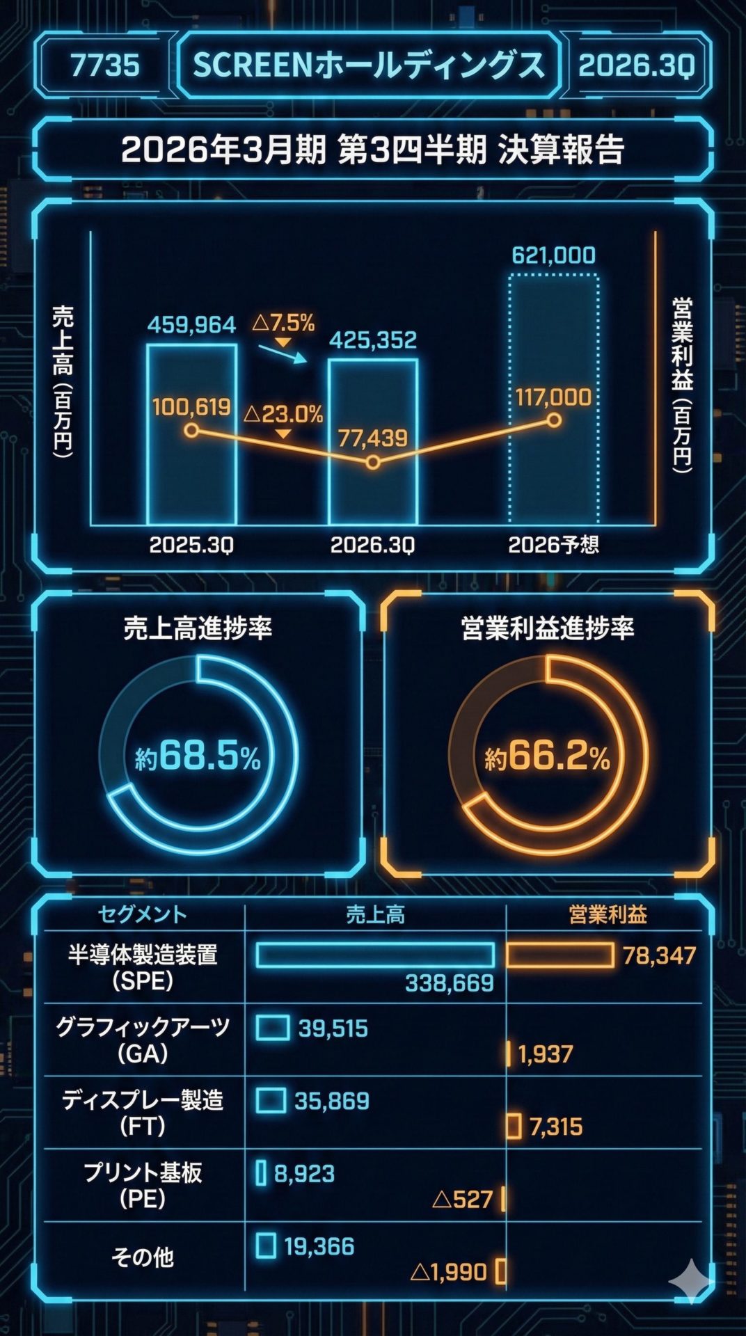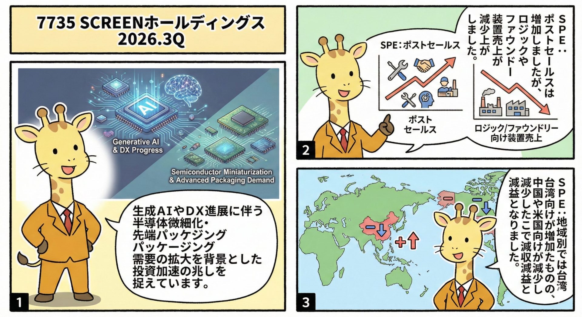 世界経済が緩やかに回復する一方、米国通商政策による不透明感が残る中で、当社グループは生成AIやDX進展に伴う半導体微細化・先端パッケージング需要の拡大を背景とした投資加速の兆しを捉えています。しかし、当四半期累計では売上高の減少や固定費の増加が響き、前年同期比で減収減益となりました。