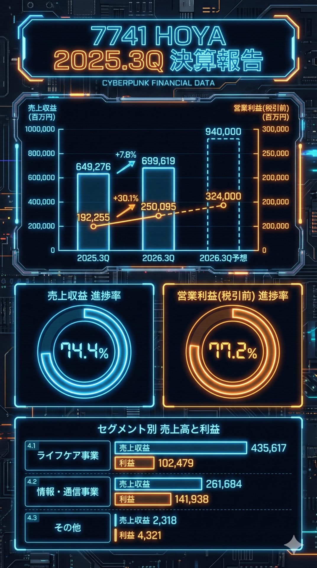 売上収益の進捗率:(699,619 ÷ 940,000) × 100 = 約74.4%