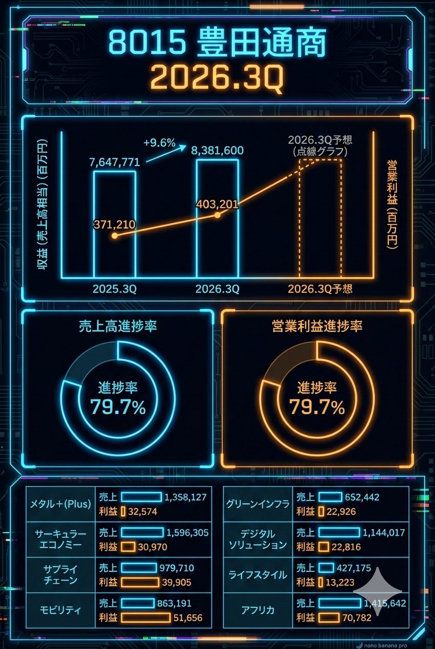 ライフスタイル: 保険事業や南米での食料事業の取り扱いが増えたことで、増益となりました。