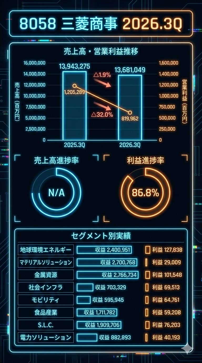 金属資源: 収益 2,766,734百万円、四半期純利益 101,548百万円