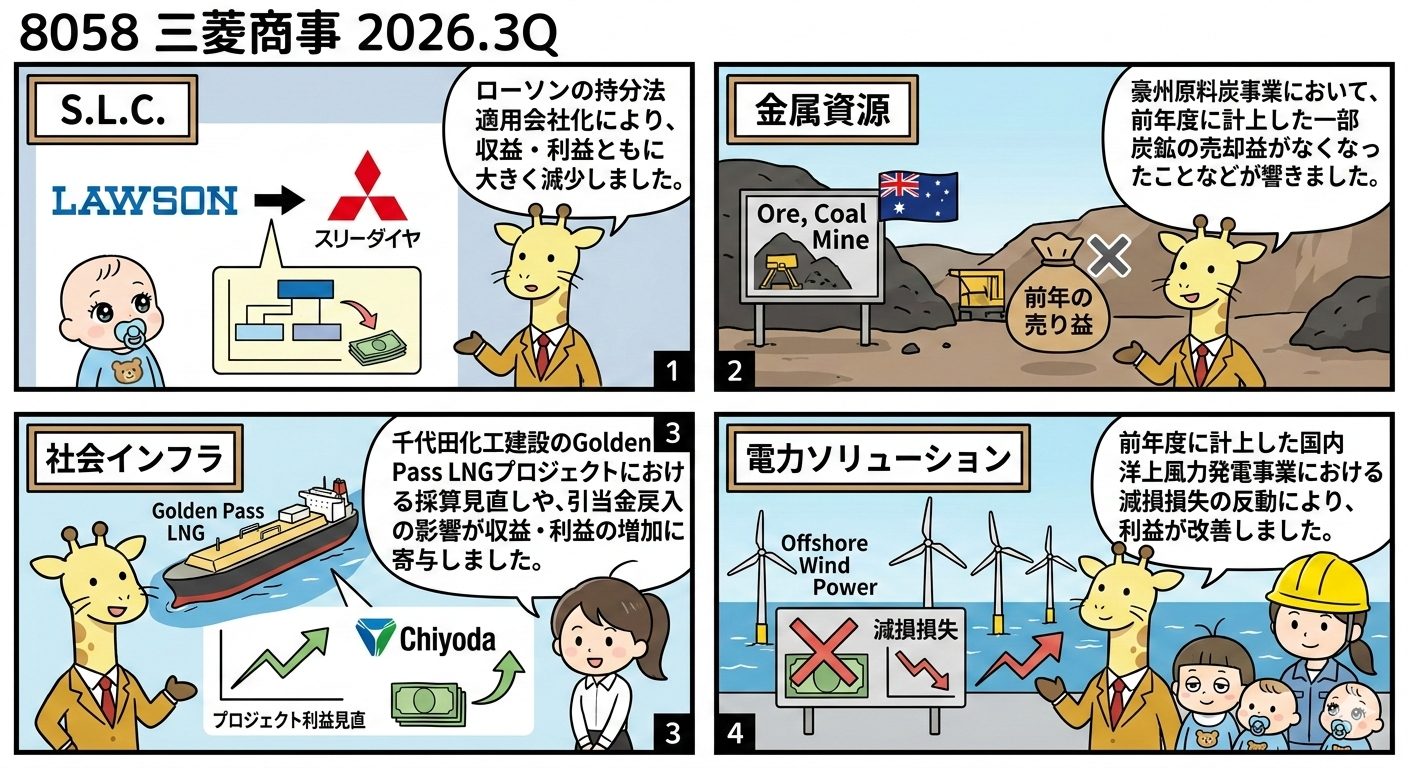 S.L.C.: ローソンの持分法適用会社化により、収益・利益ともに大きく減少しました。