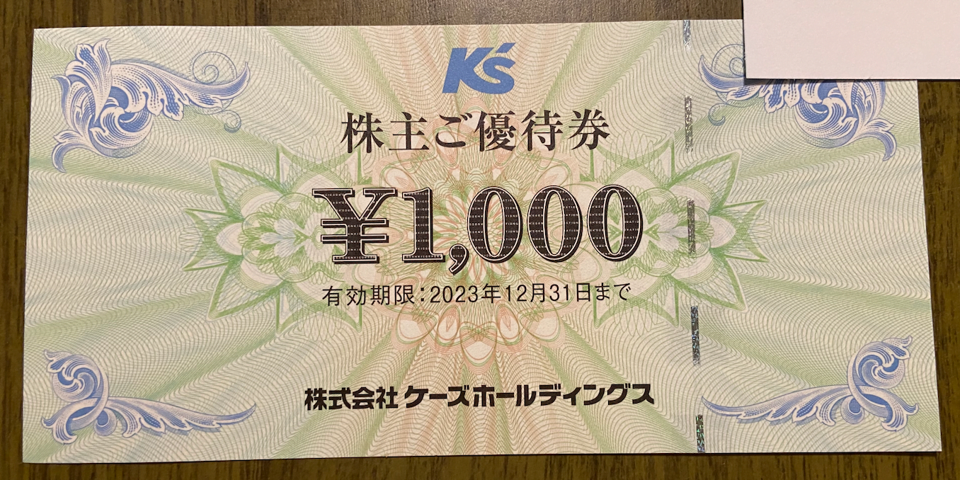 ケーズデンキで使用できる1,000円分の株主優待券を貰えます。