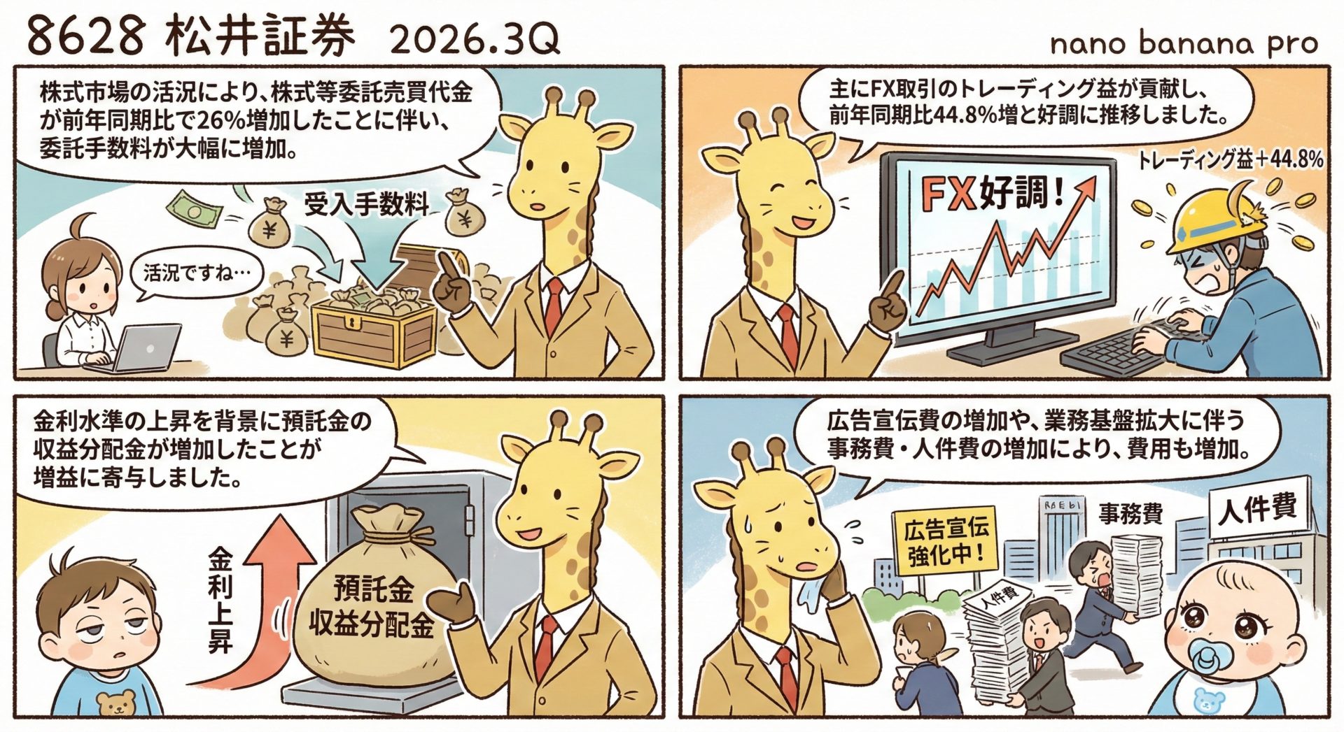 トレーディング損益: 主にFX取引のトレーディング益が貢献し、前年同期比44.8%増と好調に推移しました 。