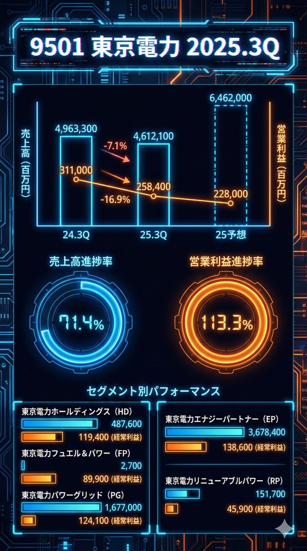 PG(パワーグリッド):エリア需要は微増し、託送収益が増加したことに加え、需給調整に係る費用が減少したことなどにより、増益となりました