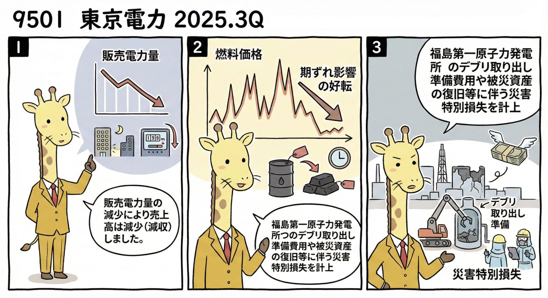 福島第一原子力発電所のデブリ取り出し準備費用や被災資産の復旧等に伴う災害特別損失(9,056億円)を計上