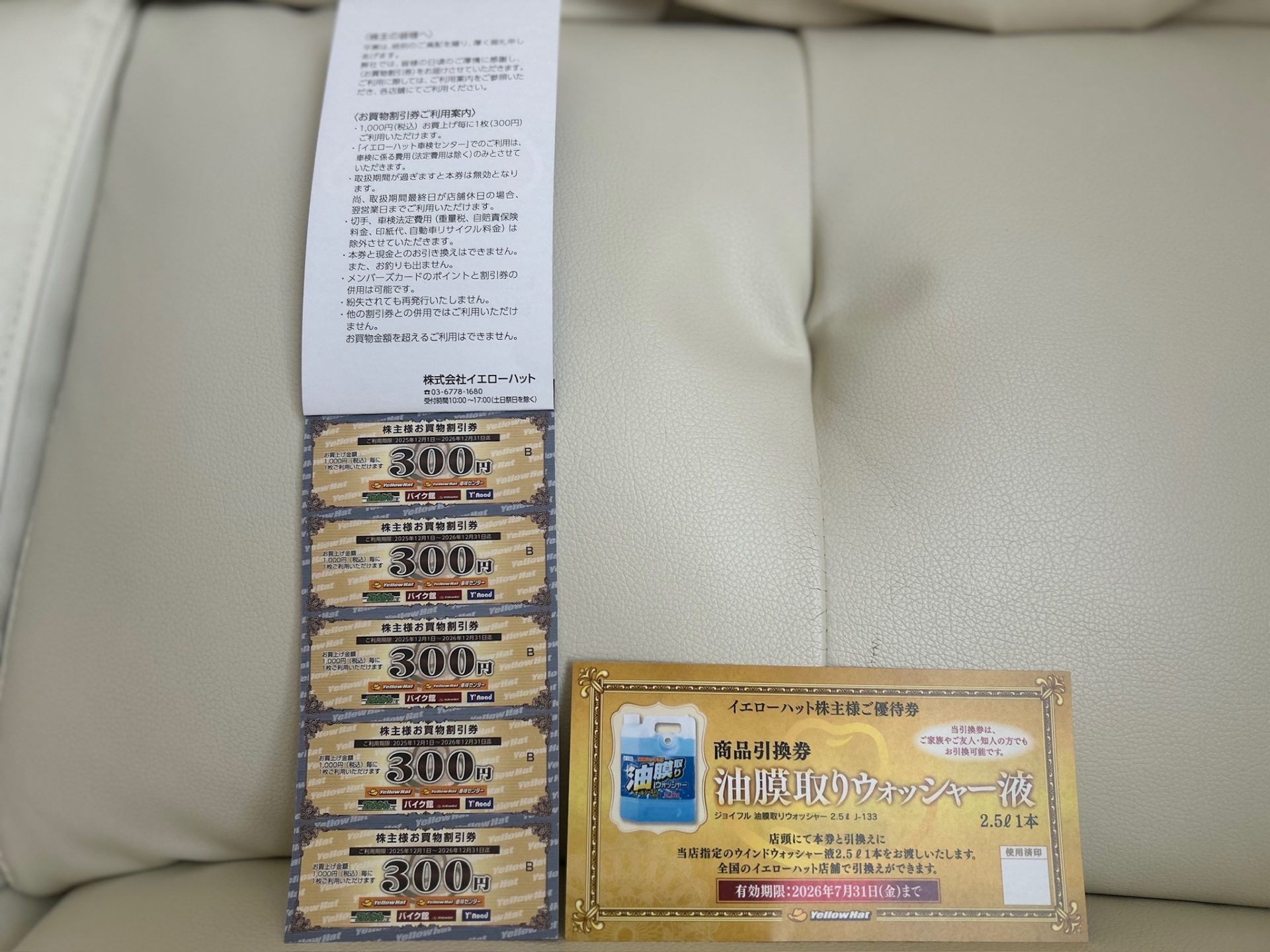 自社店舗で使える株主優待券とウォッシャー液と交換できる商品引換券を貰えます。