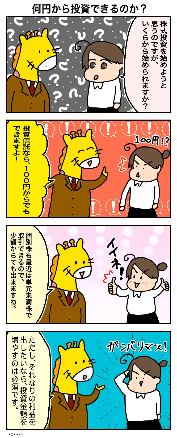 株式投資を始めようとしている初心者の方はいくらから投資が出来るのだろうと不安に思ってるかと思います。